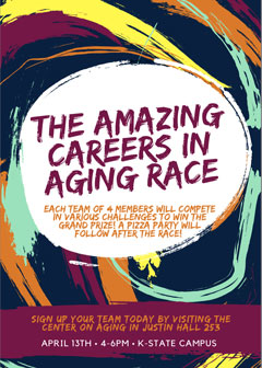 Put together a team of four and join the Center on Aging in racing around campus to learn about careers in aging. The Amazing Careers in Aging Race will be from 4-6 p.m. Friday, April 13.