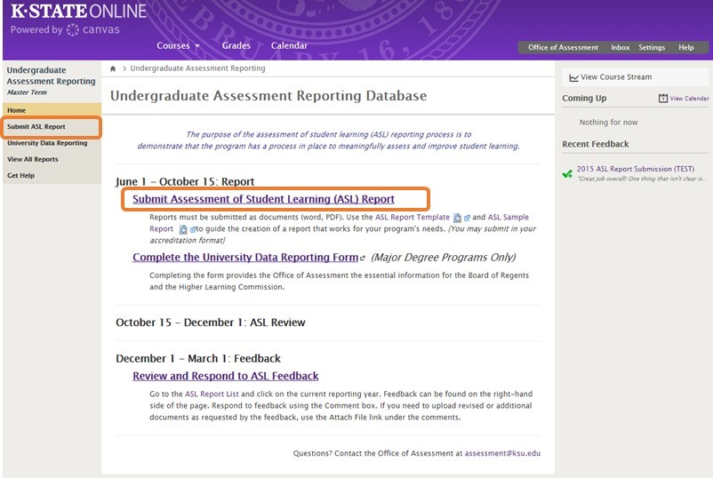 1. After logging in, click Submit Assessment of Student Learning (ASL) Report