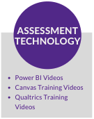 Assessment Technology and Training ResourcesIncludes training videos and tools for Power BI, Canvas, Qualtrics, and other technologies to support skill development. |