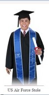 A stole takes the form of a cloth scarf-like garment worn over the shoulders and adorned with the organization's colors and/or insignia. Specialized stoles recognize outstanding service to the university or achievement in a co-curricular organization. Students may elect to purchase a KSU stole which is available to all Commencement participants. Students should not alter approved stoles.