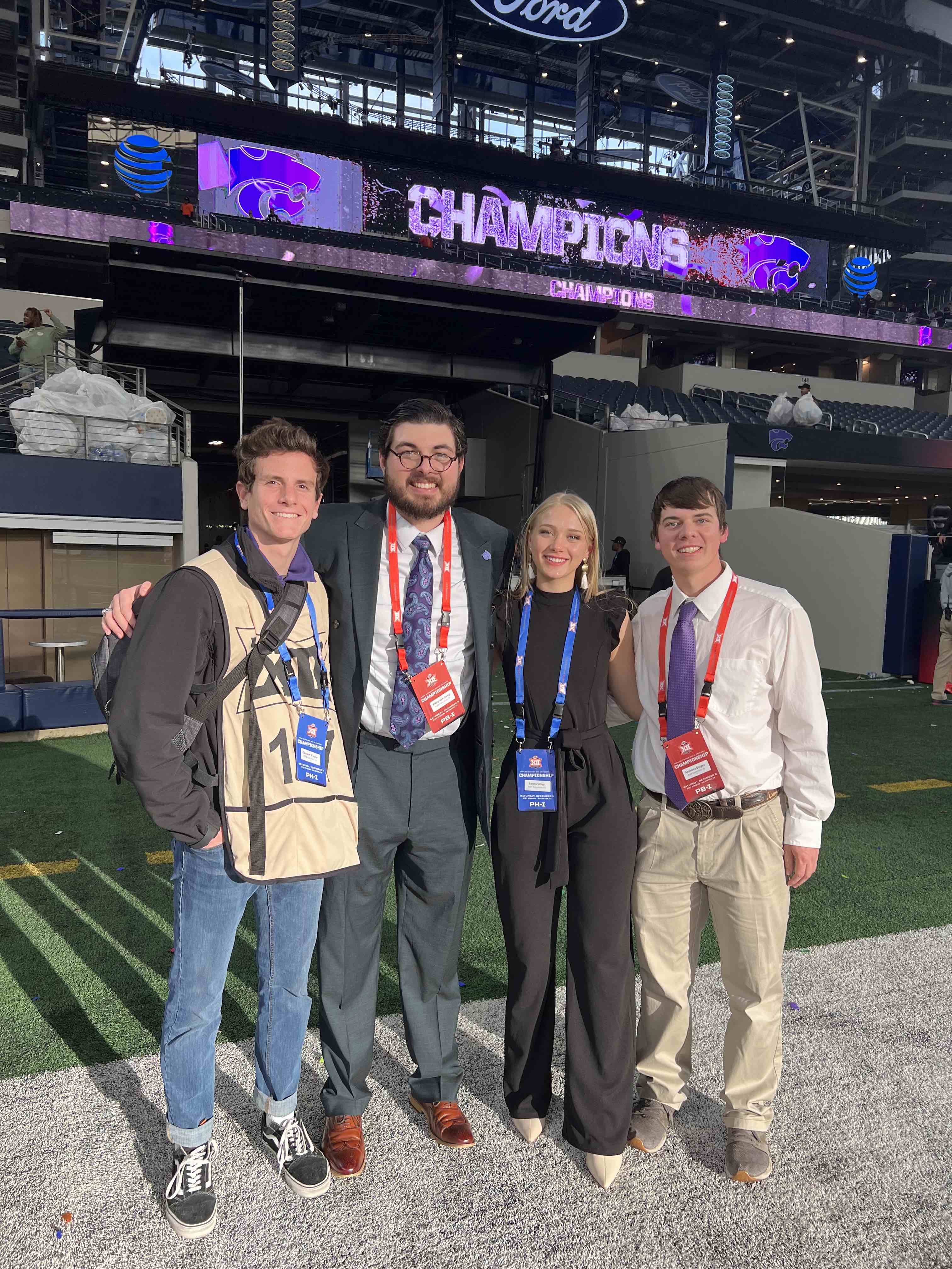 Wildcat 91.9 sent four students to Arlington, Texas, while three staff members based in Manhattan hosted the pregame, halftime and postgame coverage. In total, nine Wildcat Electronic Media students worked with faculty to create an unforgettable broadcast production in the booth, on the sidelines, in the stands and in the studio.