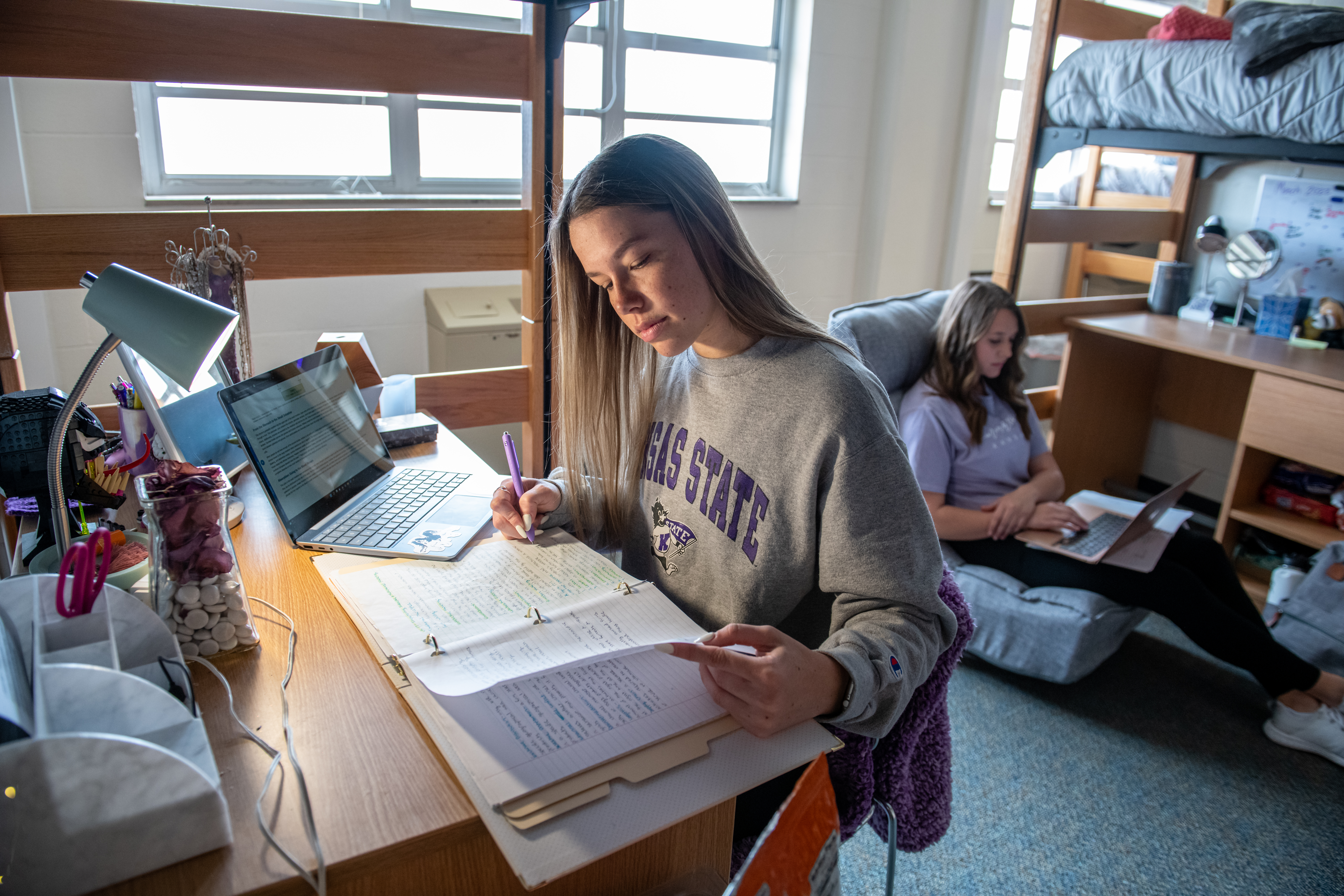 On-campus living is one of the most important experiences for a first-year college student, and Pathway students live in a residence hall on campus at K-State in Manhattan or Salina, located only a short distance from either Manhattan Tech or Salina Tech. | Download this photo.