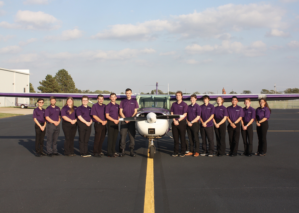 Michael Einwich, senior in professional pilot, Bel Aire; Daniel Novovesky, senior in professional pilot, Overland Park; Alex Mercy, sophomore in professional pilot, and Isaac Smith, senior in professional pilot, both from Salina; Luke Dufort, senior in professional pilot, Shawnee; and Gavin Bowman, senior in professional pilot, Wichita.