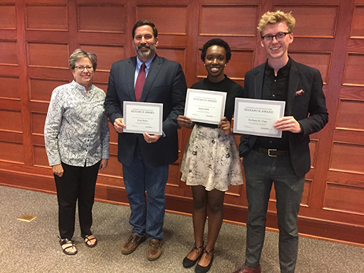 "We work with students on research projects throughout the year, but we rarely see final versions," said Cindy Logan, associate professor, academic services librarian and chair of the award committee. "It's so gratifying to have this opportunity to review and recognize the extraordinarily high-caliber research they're completing."