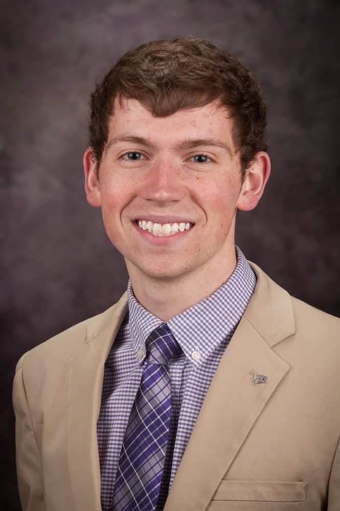 His running mate, Jacob Unruh, junior in finance, Manhattan, will serve as student body vice president.