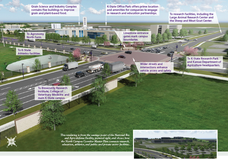 Today, with construction of the $1.25-billion National Bio and Agro-defense Facility, or NBAF, underway, the university, the Kansas State University Institute for Commercialization, the Kansas State University Foundation, the city of Manhattan, Riley County, the Manhattan Area Chamber of Commerce and K-State Athletics have put their plan into action. The collaborative team is developing an area where the public and private sectors can co-locate with the university, support the K-State research and education mission, build on the university’s expertise in global food systems and biodefense, and create value for all.