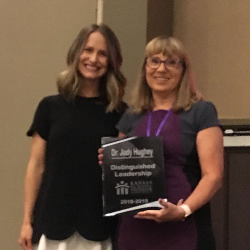 was presented with a Distinguished Leadership Award from the Kansas School Counselor Association at the sixth annual School Counseling Camp recently in Manhattan.