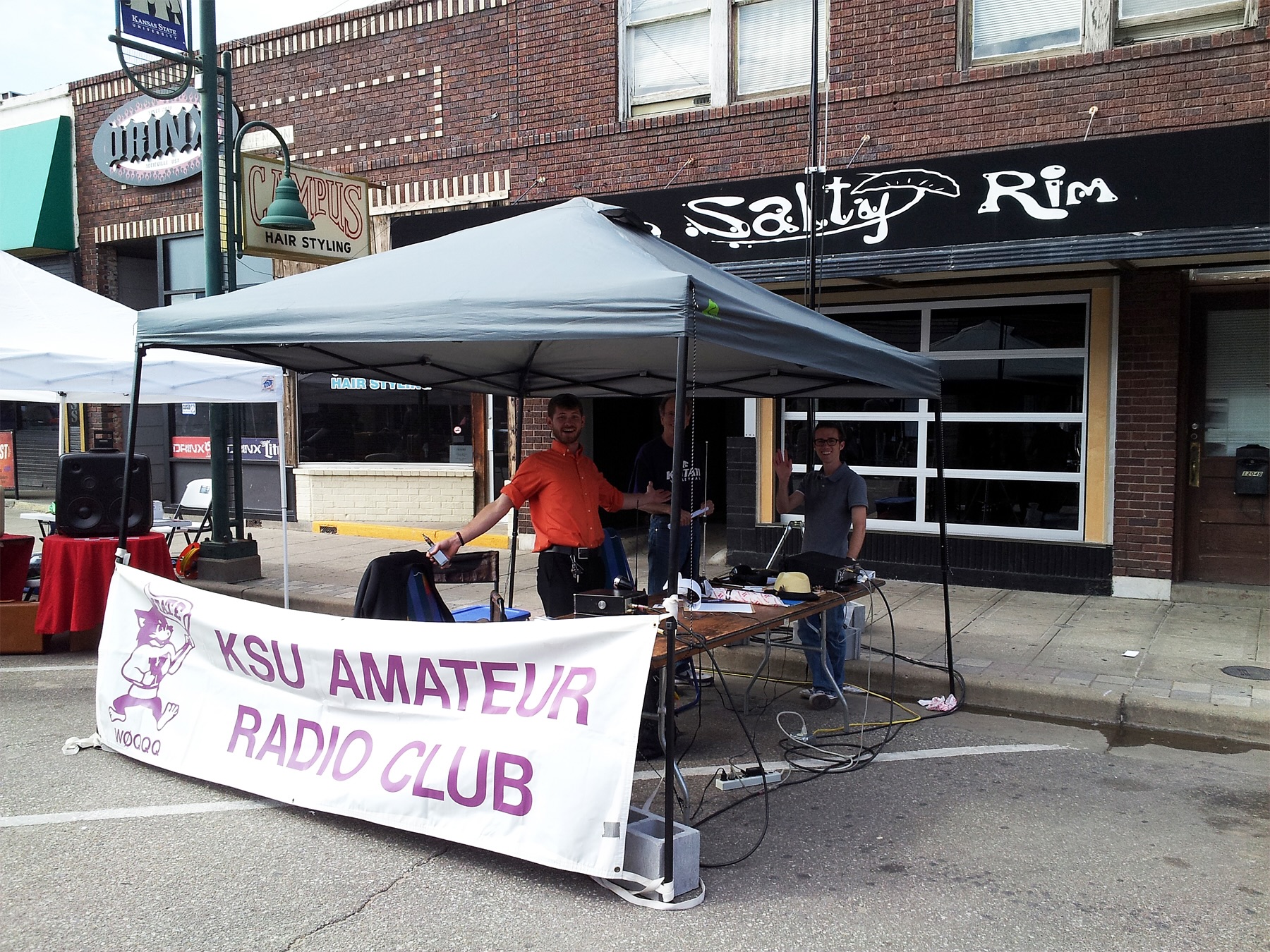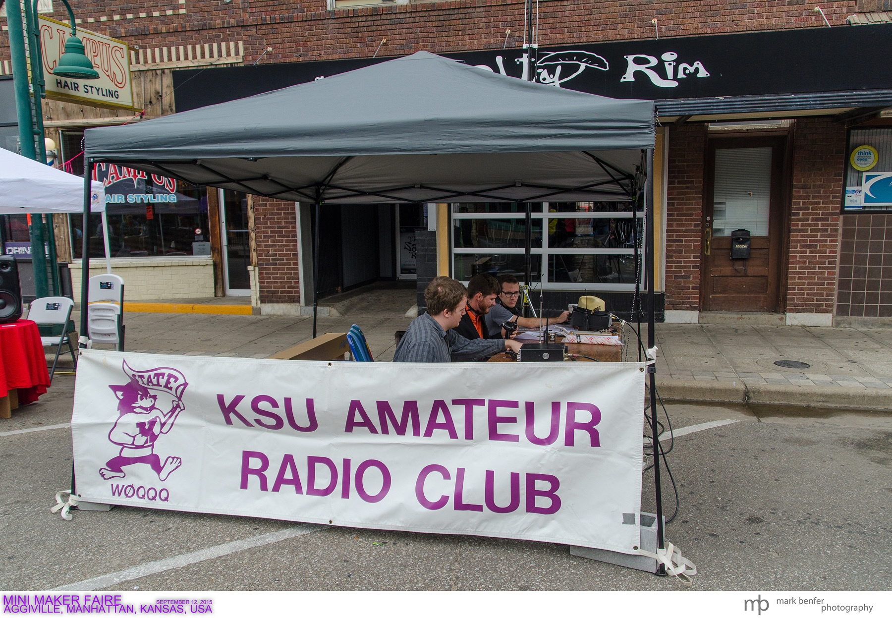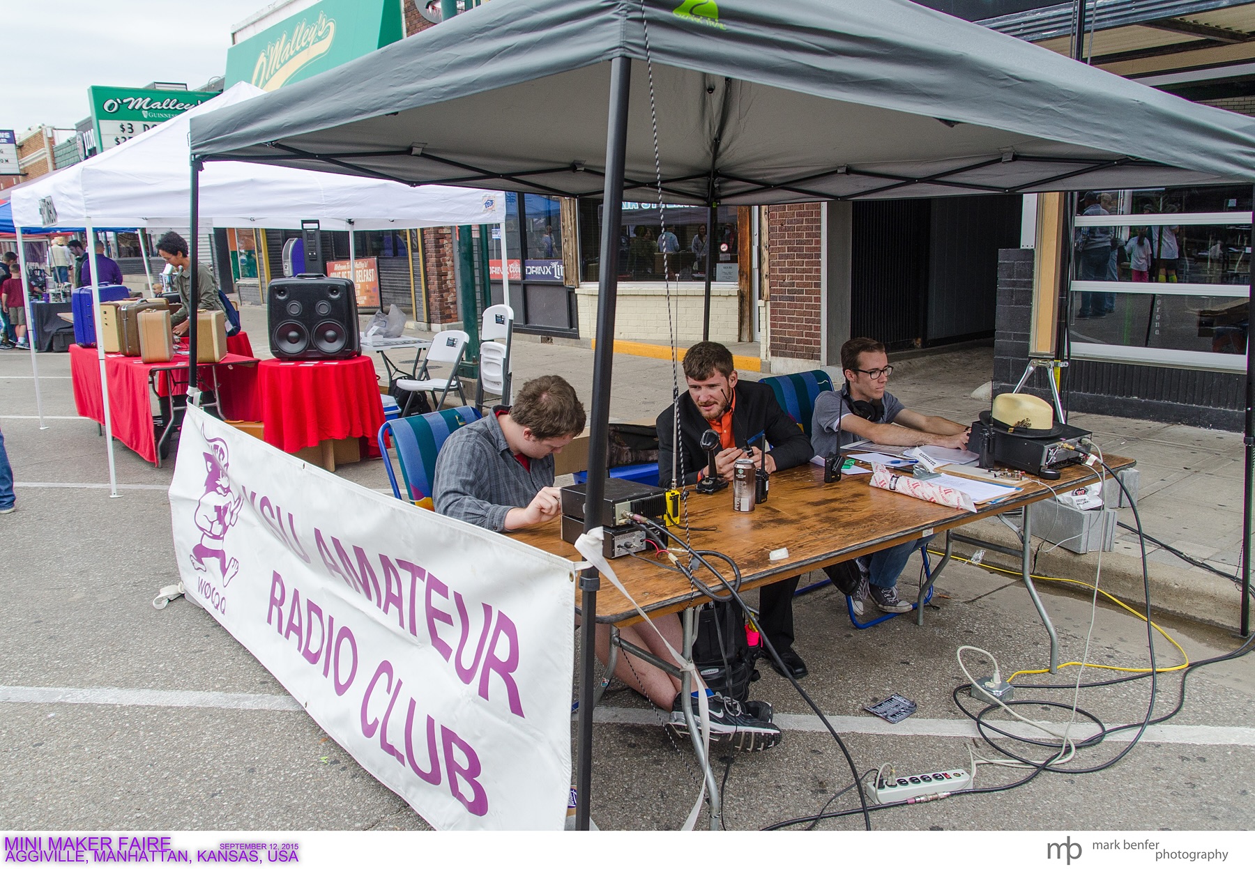 Aggieville Mini Maker Faire - September 2015 Earl Watkins, KEØASI, James Copeland, KDØICP and Reid Saylor, KEØEIE (photo by former president Mark Benfer, KCØQAS) |