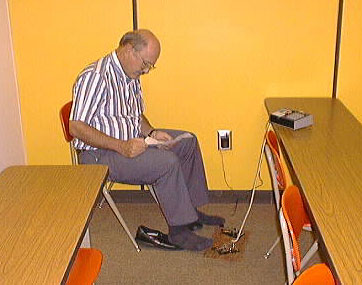 Norm Dillman, NØJCC demonstrates alternate CW technique after a MAARS meeting, summer of 1998 |