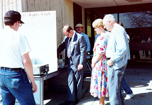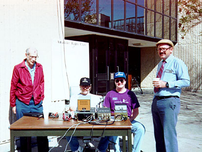 Open House 1992 (left to right) Francis Sable, WØEVJ; Tom Phillips, KFØKR; Eric Smith, NØLXY; Norm Dillman, NØJCC |